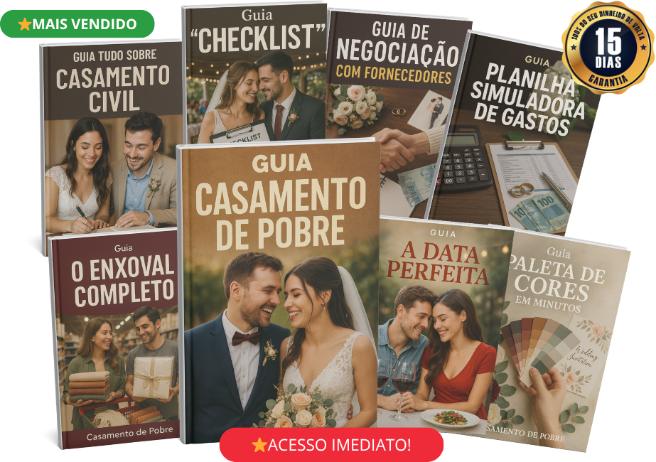 O guia completo para você fazer o seu casamento perfeito gastando menos de R$7.000com técnicas econômicas que as consultorias de casamento escondem de você.